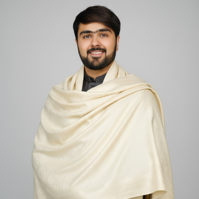 Designed in a rich cream tone, it drapes beautifully and feels exceptionally smooth on the skin — making it ideal for both casual and formal winter wear.